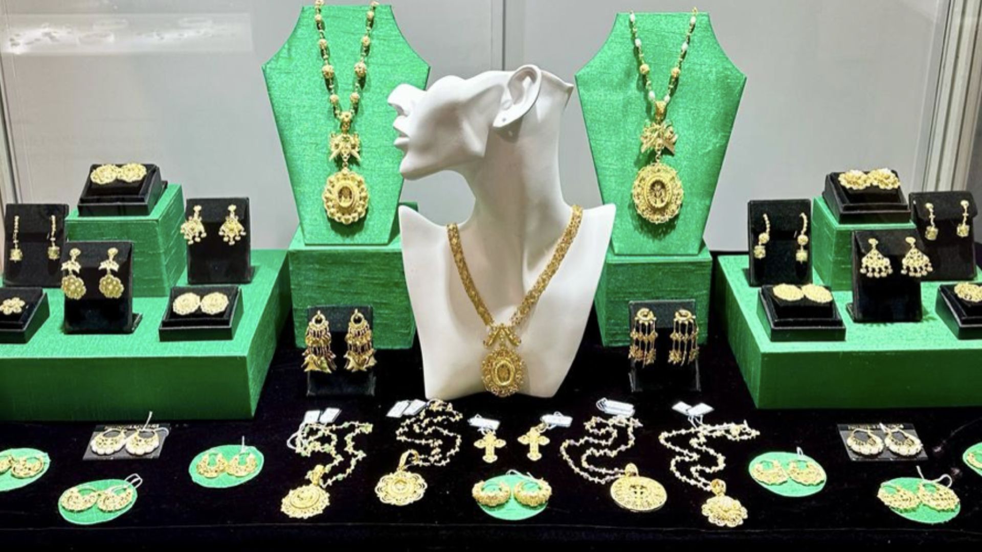 Handcrafted items, gold filigree, custom-made fine jewelry, antique and Filipiniana-inspired fine jewelry with South Sea pearls, precious gemstones, and jewels that showcase the art of intricate traditional metalwork, like the Filipino tambourine jewelry technique, were all on display at the Philippine booth.