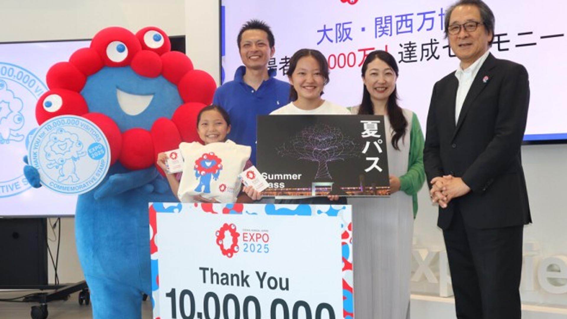 The Japan Association for the 2025 World Exposition held a commemorative ceremony Sunday as the total number of visitors, including staff, reached 10 million at the ongoing Expo in Osaka.